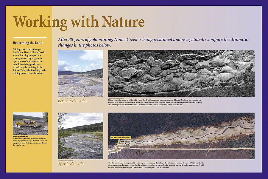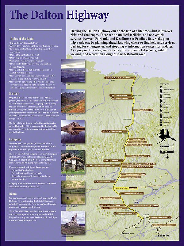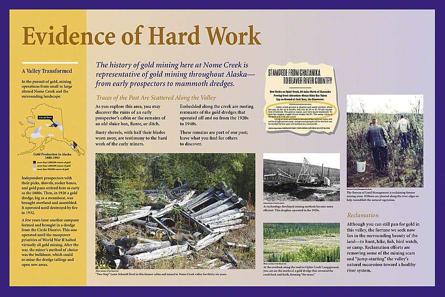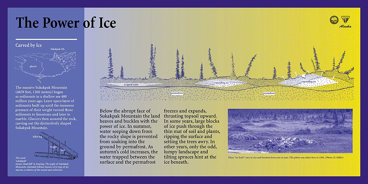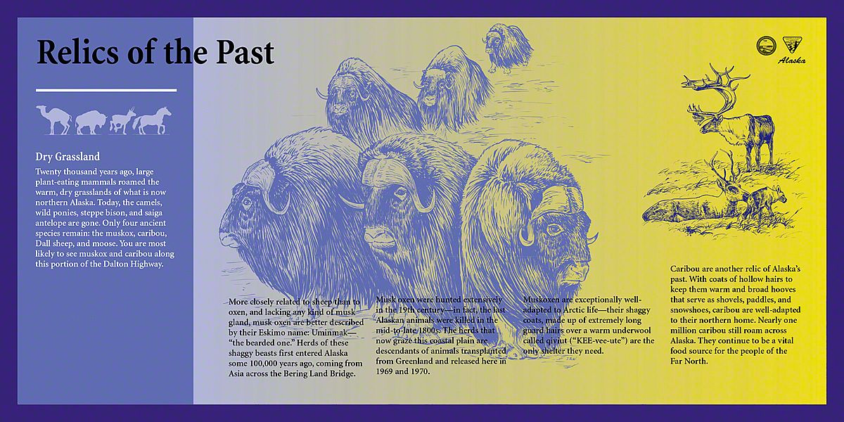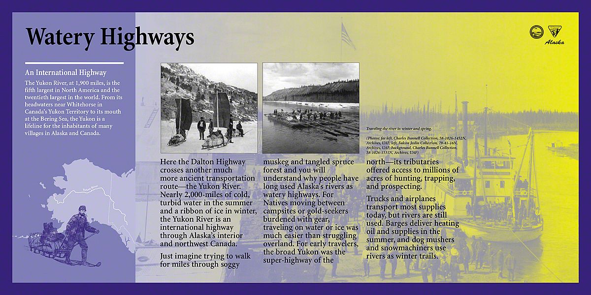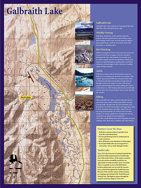 Today, the Dalton Highway is a thousand-mile-round-trip from bustling Fairbanks, Alaska to the edge of the world - beyond the Arctic Circle to the frozen shore of the Arctic Ocean - Prudhoe Bay. The diversity of landscapes over this long drive created an interesting design challenge. Sea Reach was responsible for the design and fabrication of over fifty 48" x 24" wayside exhibits and twelve orientation kiosks.