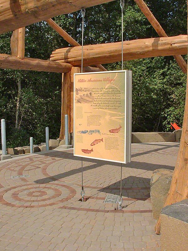Overlooking the Columbia River, the exhibits along the dike trail tell stories about early explorers of the region, Native American peoples of the lower Columbia River, cultural significance of the Columbia River, the pioneer/settlement history of the Washougal area, formation of the Columbia Gorge, and flora and fauna habitat.