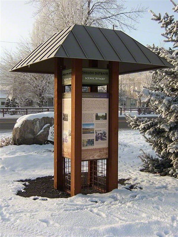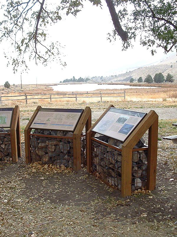 The design was inspired by natural features and historic landmarks along the byway, the exhibit design and structures reflect the landscape. The "rock-box" kiosks mimic rancher's fence-lines, low-profile interpretive exhibits fade into the environment, and wall-mounted displays maximize space. Materials were chosen to maximize the budget, while delivering the most durable product available - specifically designed to withstand the harsh climatic fluctuations of the byway.