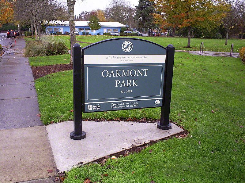 The City of Eugene, Oregon is updating all of their park identity signs. Historically, this style of sign has been fabricated out of wood, but with newer materials available, it is now possible to look at a wider range of possibilities. Sea Reach was contracted for two phases to design and fabricate forty, single- and double-sided, arch top, park name signs and ten regulatory signs. The simple design lent itself to both urban and forested settings. The fabrication is an all aluminum structure (light, easy to install, and does not rust) and the sign faces are 1/8" high pressure laminate (inexpensive to update and easy to install). The sign is designed on a pivot, and has a removeable rail at the base to slide the sign panel in and out.