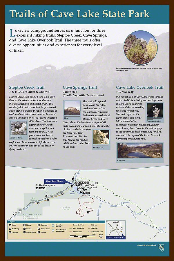In 2001, Sea Reach Ltd was awarded an indefinite delivery/indefinite quantity (IDIQ) contract with Nevada State Parks. We began by updating their design standards and expanding it to include interpretive, orientation (maps), directional, and regulatory signage. The next four years were filled with planning, designing and fabrication exhibits for Nevada State Parks.