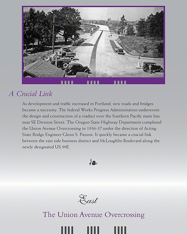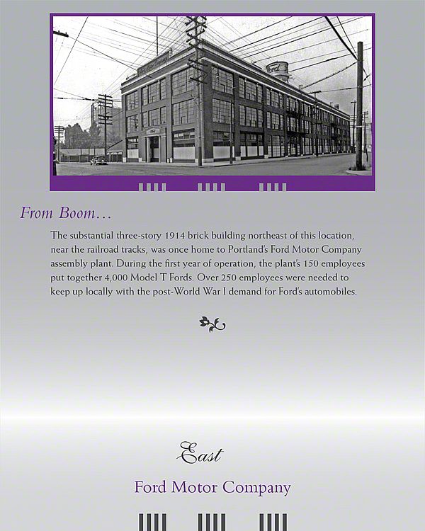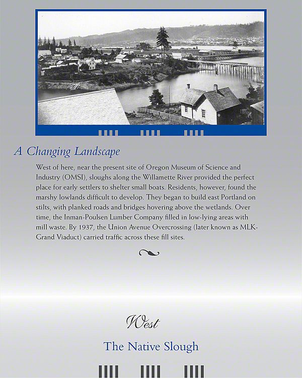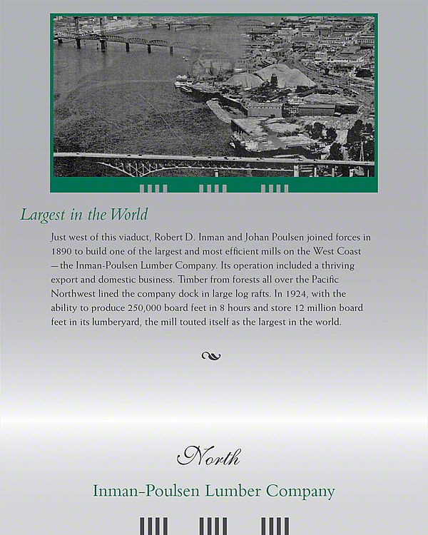A hundred years ago, the Martin Luther King Viaduct did not have a such classy name and, instead of spanning asphalt and railroad tracks, it spanned vast marshy wetlands and fertile flood plains. Ships plied the Willamette River, and huge log rafts waited processing at Portland's largest lumber mill. Brand new model T's chugged out of the new Ford factory, passing the mill's mountain of sawdust.
