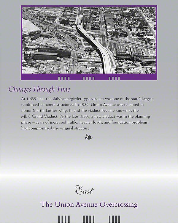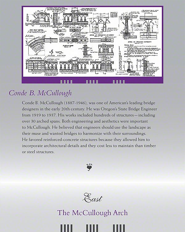 Today, the bridge is a sleek, modern concrete structure with stainless and galvanized steel accents. Sea Reach designed and fabricated twenty-five exhibits that face in all directions at the bridge's towers. The exhibit design compliments the architecture. They are fabricated in etched stainless steel, powder-coated aluminum, and porcelain enamel - intended to last as long as the bridge.