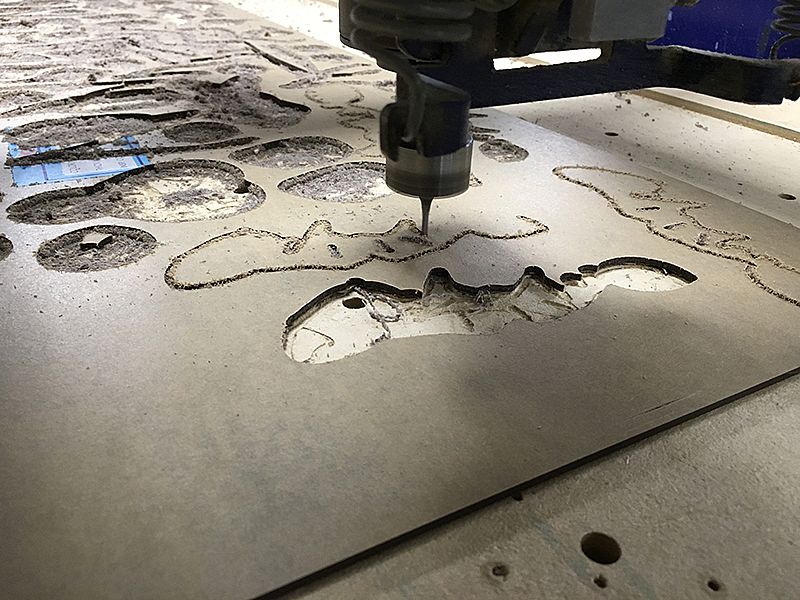 For the awkward space under the stairs we designed a giant shelf with adjustable shelves for larger items. This shelf also creates an entrance to a hidden bear cave for the kids (another legacy item from the former design)—complete with interpretation about bear hibernation.