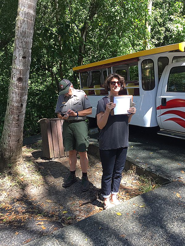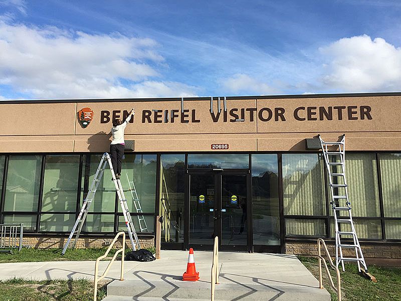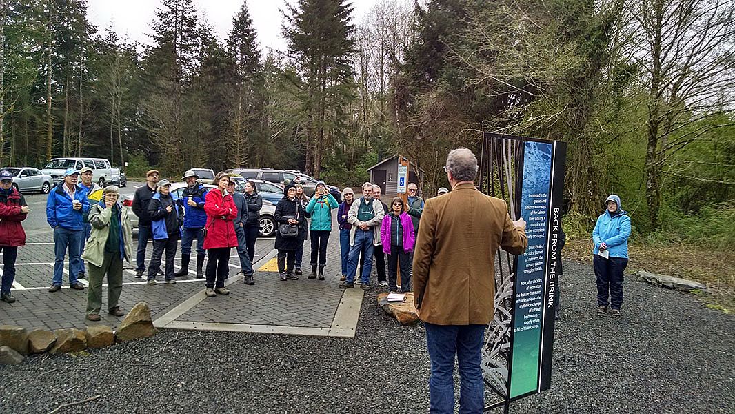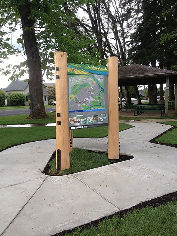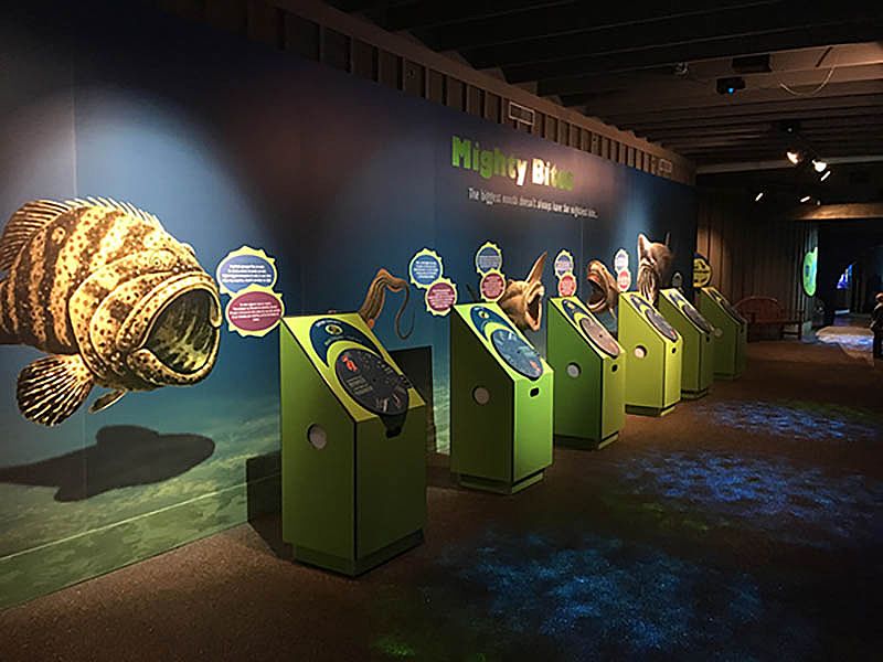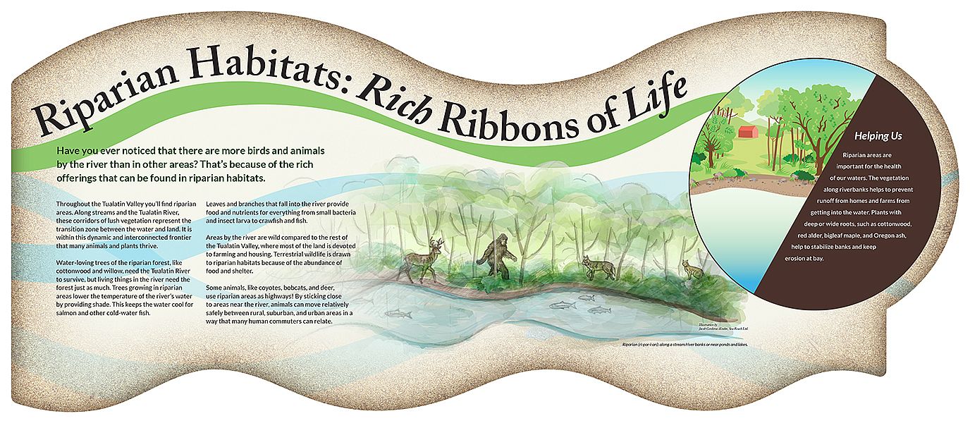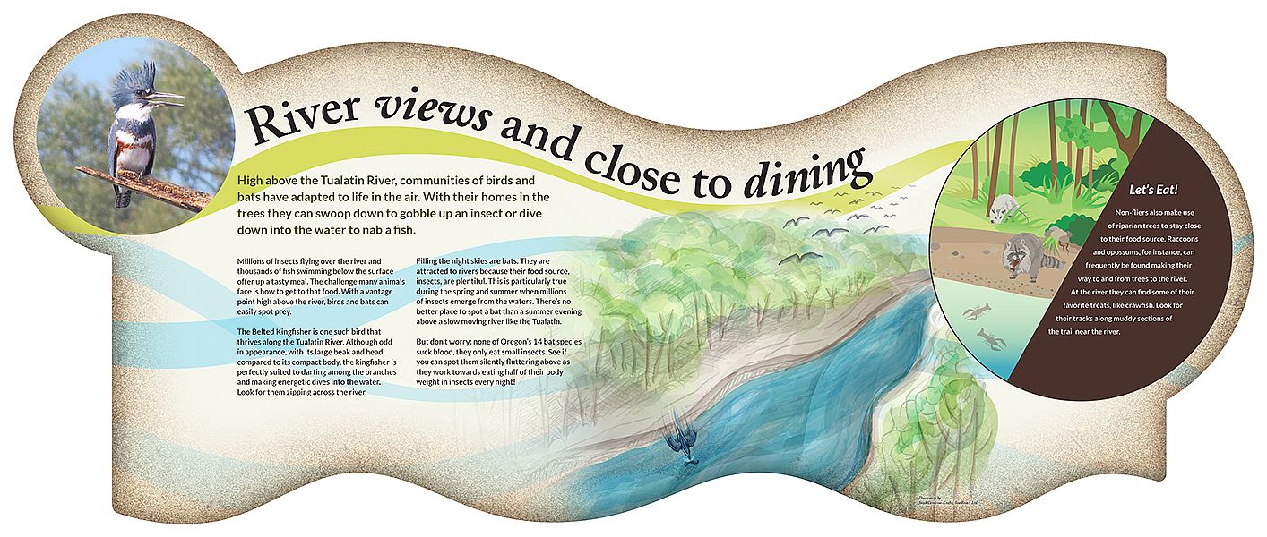Interpretive panels continue outside on the deck and the grounds. All these items create a cohesive organized space that moves a visitor through from the entrance to the exit.