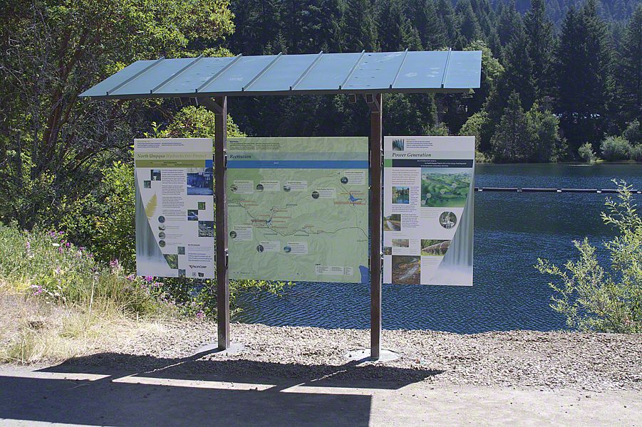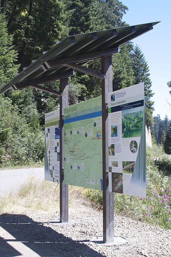 Constructed between 1947 and 1956, the eight hydroelectric developments that make up the 194-megawatt (mw) North Umpqua Hydroelectric Project use water primarily from the North Umpqua River and are located entirely within the Umpqua National Forest about 60 miles east of Roseburg. PacifiCorp contracted Sea Reach to design, fabricate, and install signage with maps of the area, a list of recreational opportunities, information about the National Forest and a history and explanation of the hydroelectric project. Signs were installed in 2010.