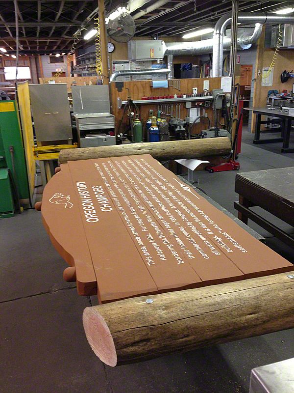 Oregon's Travel Information Council contracted Sea Reach to redesign this sixty-year-old marking system, to research, write, illustrate, produce, and manufacture replacement monuments as well as new markers. The new design was fabricated in fiberglass embedment and mounted within an aluminum frame on a traditional massive wooden structure.