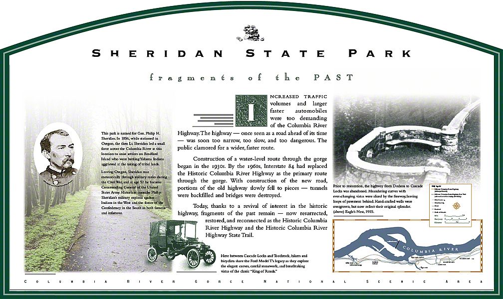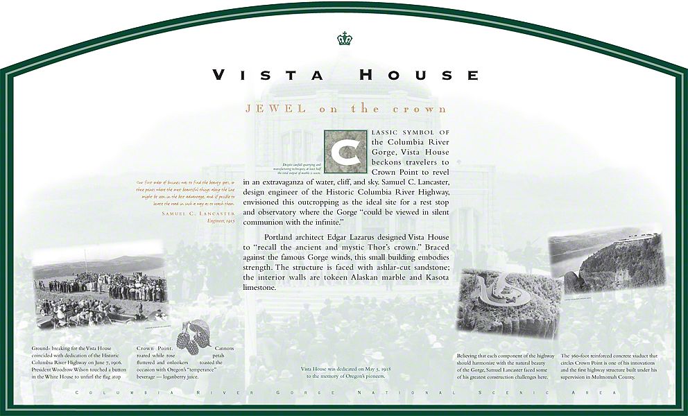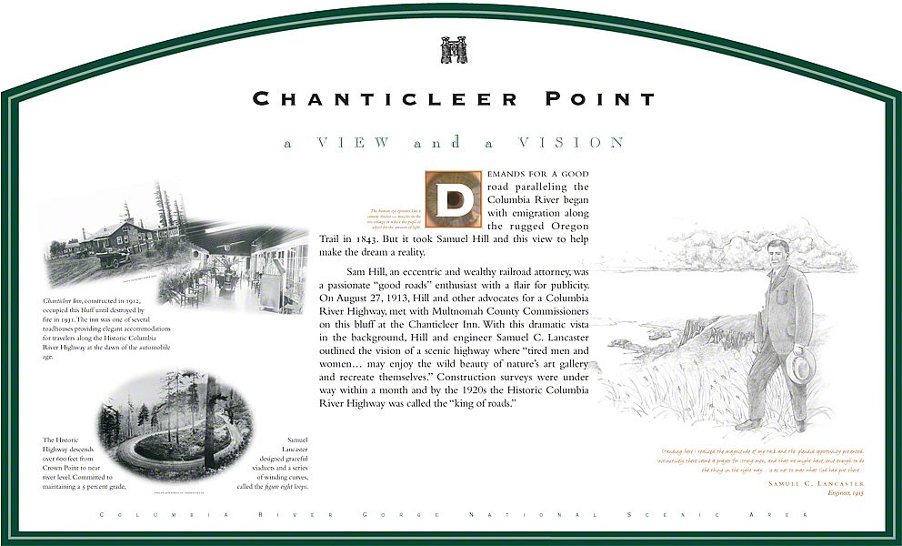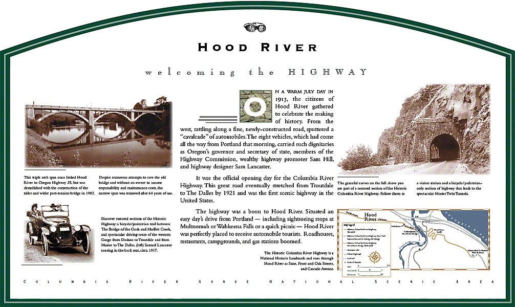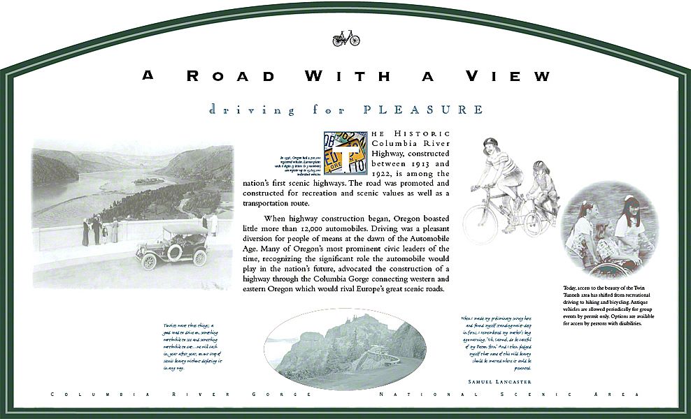These panels address topics that range from construction of the Historic Highway to the natural history and geology of the Columbia River and the Gorge. They are installed along the 80-mile section of the old highway.