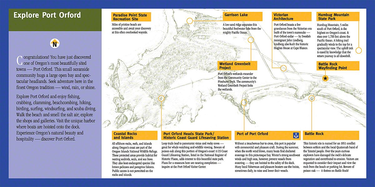 After designing and producing the first wayfinding site, Sea Reach was subsequently contracted to plan, design, fabricate and install three more sites along the Oregon coast: Port Orford, Neskowin, and Manzanita.