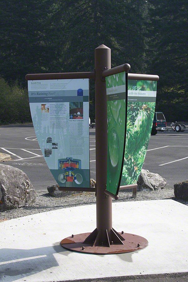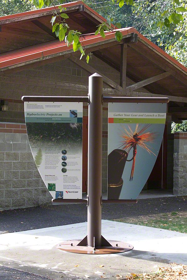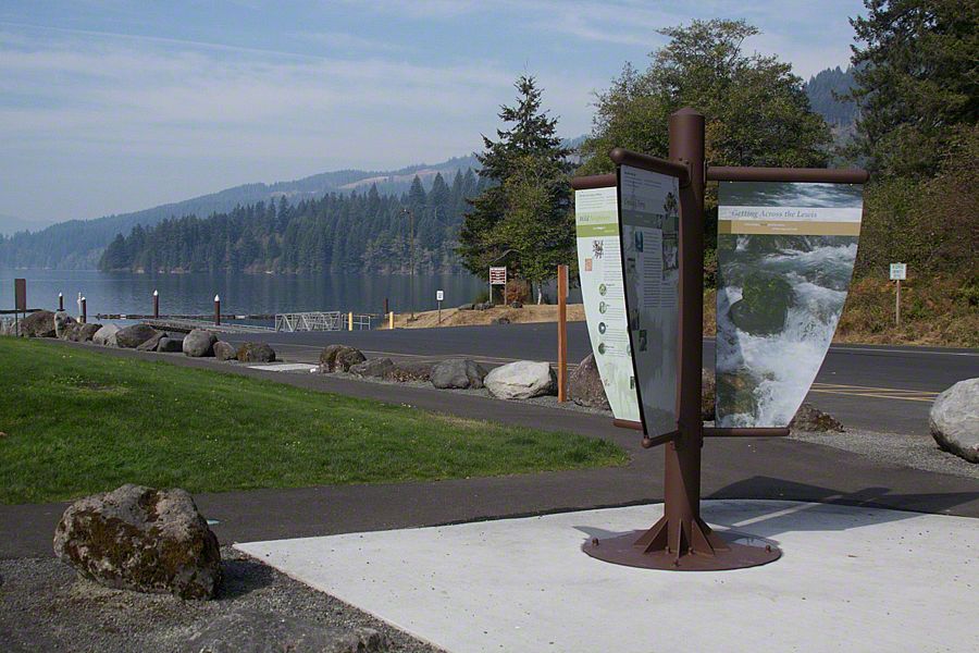 In 2008, Sea Reach was contracted to develop an interpretive master plan for the entire area as part of the requirements for the 50-year relicensing effort of Pacificorp. Sea Reach worked closely with PacifiCorp staff, stakeholders, the Yakama and Cowlitz Tribes, and members of the community to bring stories about the natural and cultural history of the area to life. The exhibit structures are custom designed and fabricated with large images intended pique visitors curiosity, as well as be a glimpse into the narrative of each panel. Each exhibit features a range of interesting topic, raising questions such as: how do the three reservoirs work to provide the West Coast with hydroelectric power? What is the difference between salmon caught upstream and those caught downstream? What is unique about electricity as a commodity? How do electric rates fluctuate on a daily basis depending on things like the weather?