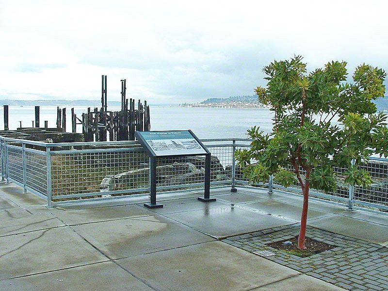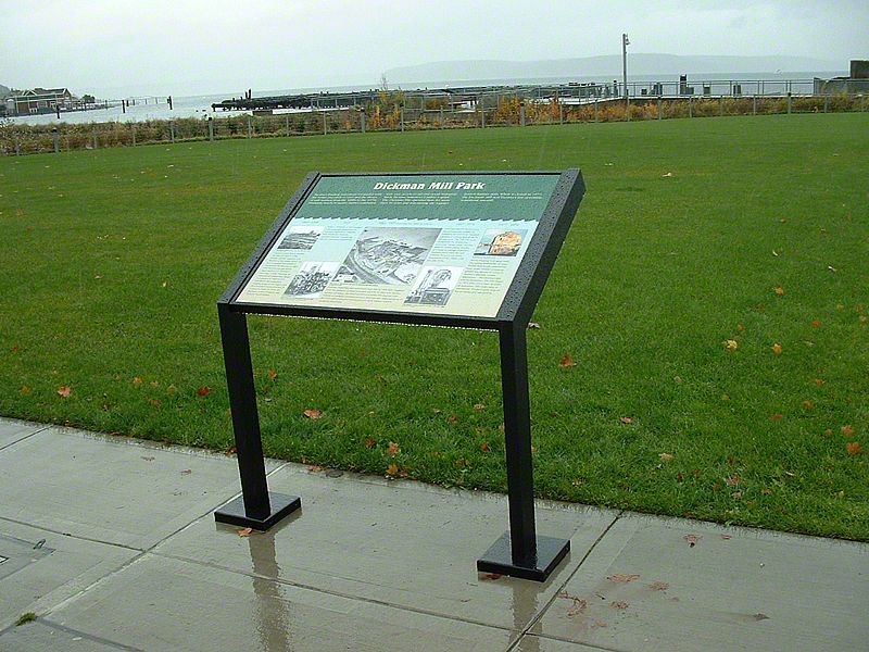 The nine-acre Dickman Mill Park meanders the waterfront in downtown Tacoma - offering places to sit, ride a bike, or dine. The site occupies a significant place in Tacoma's history as a lumber-producing center. The Dickman Lumber Mill operated continuously from the 1890's until 1974. It was the last in a long tradition of lumber mills on Tacoma's "Old Town" waterfront to close down. Following a fire in 1979, the remnants of the mill slowly deteriorated. A few reminders of the past are still visible and these are interpreted through a series of exhibits.