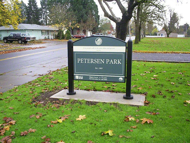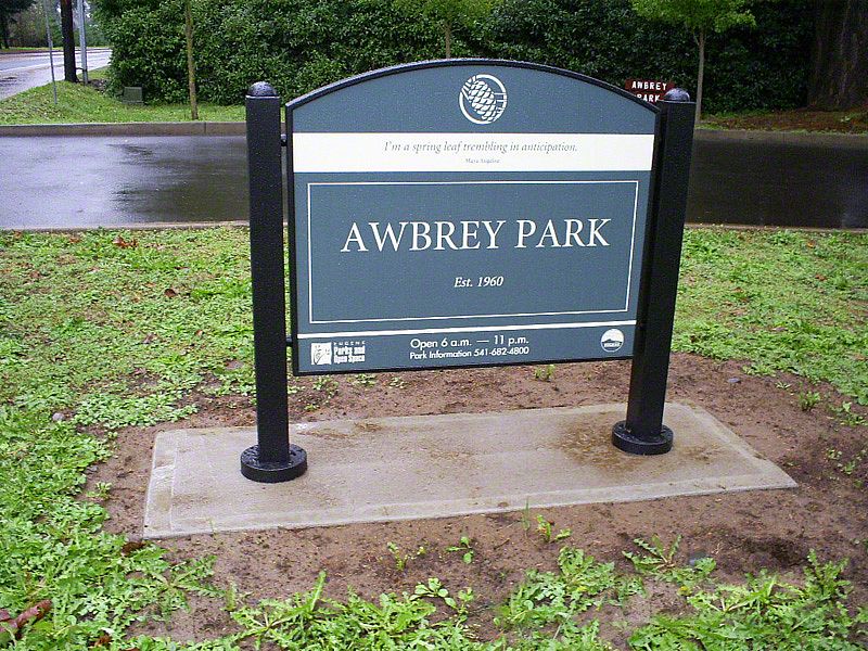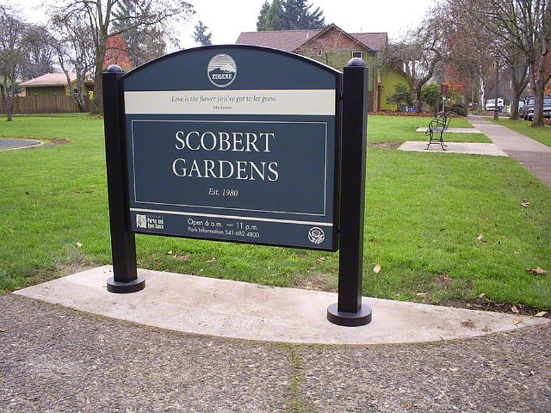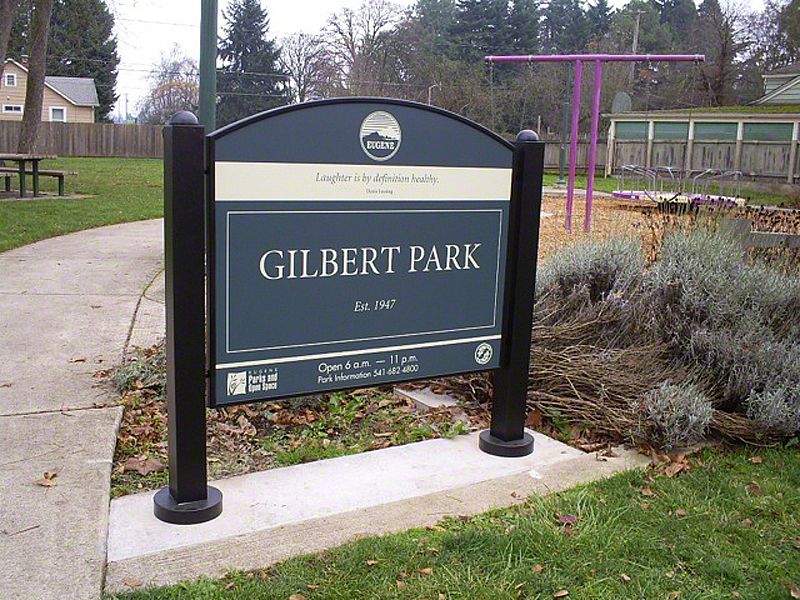 The City of Eugene, Oregon is updating all of their park identity signs. Historically, this style of sign has been fabricated out of wood, but with newer materials available, it is now possible to look at a wider range of possibilities. Sea Reach was contracted for two phases to design and fabricate forty, single- and double-sided, arch top, park name signs and ten regulatory signs. The simple design lent itself to both urban and forested settings. The fabrication is an all aluminum structure (light, easy to install, and does not rust) and the sign faces are 1/8" high pressure laminate (inexpensive to update and easy to install). The sign is designed on a pivot, and has a removeable rail at the base to slide the sign panel in and out.